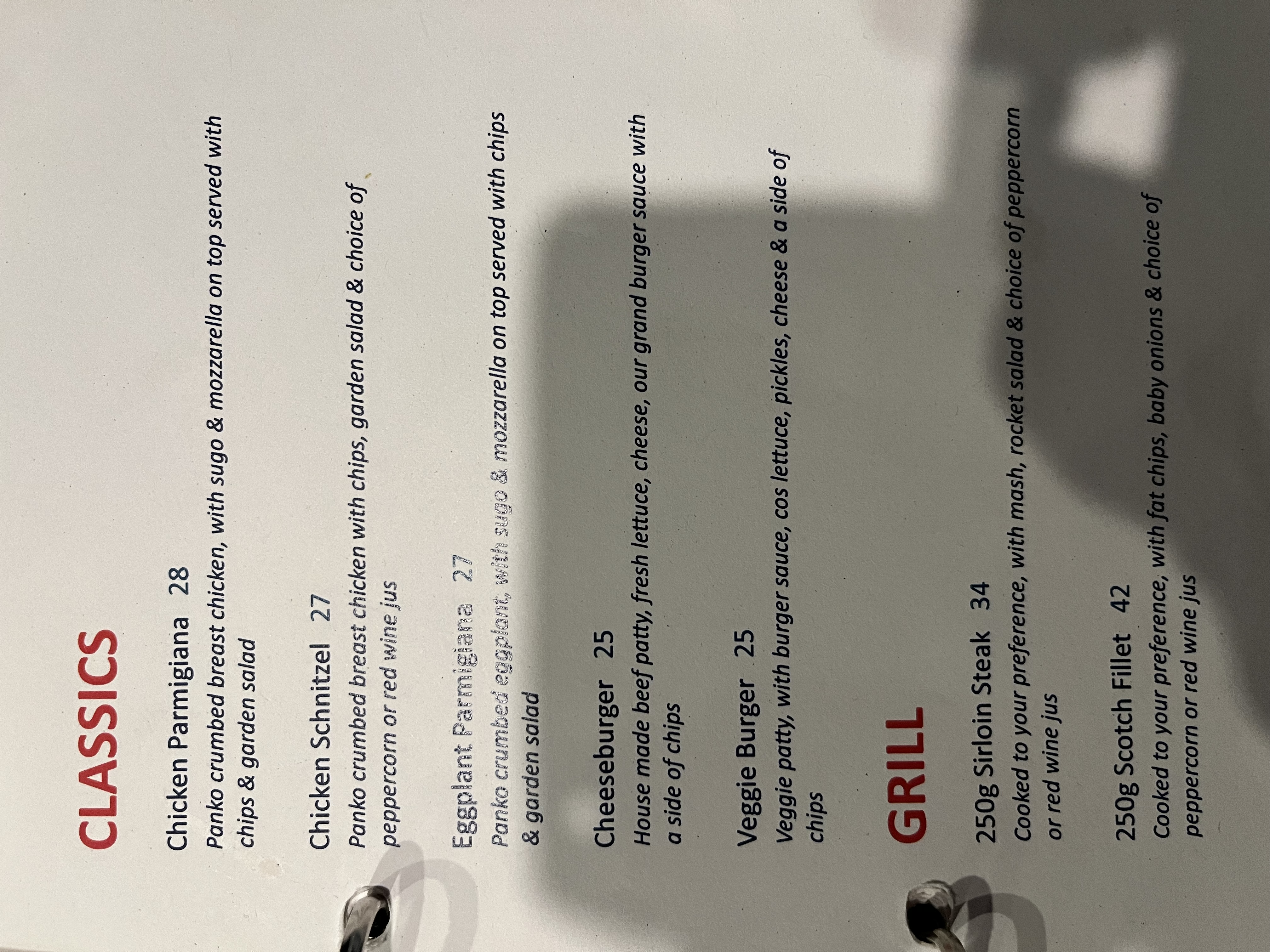 see menu attached.